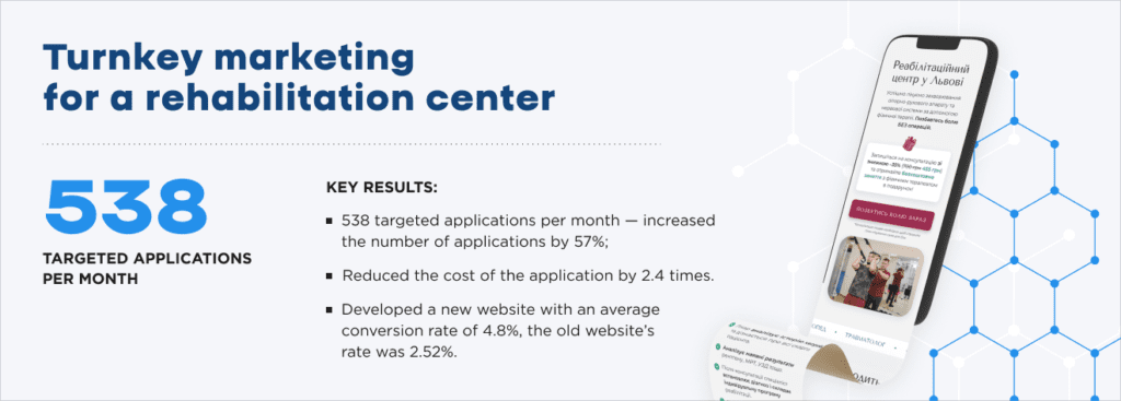 An integrated approach to marketing a rehabilitation center allowed us to increase profits in the first months of cooperation thanks to several key approaches:
