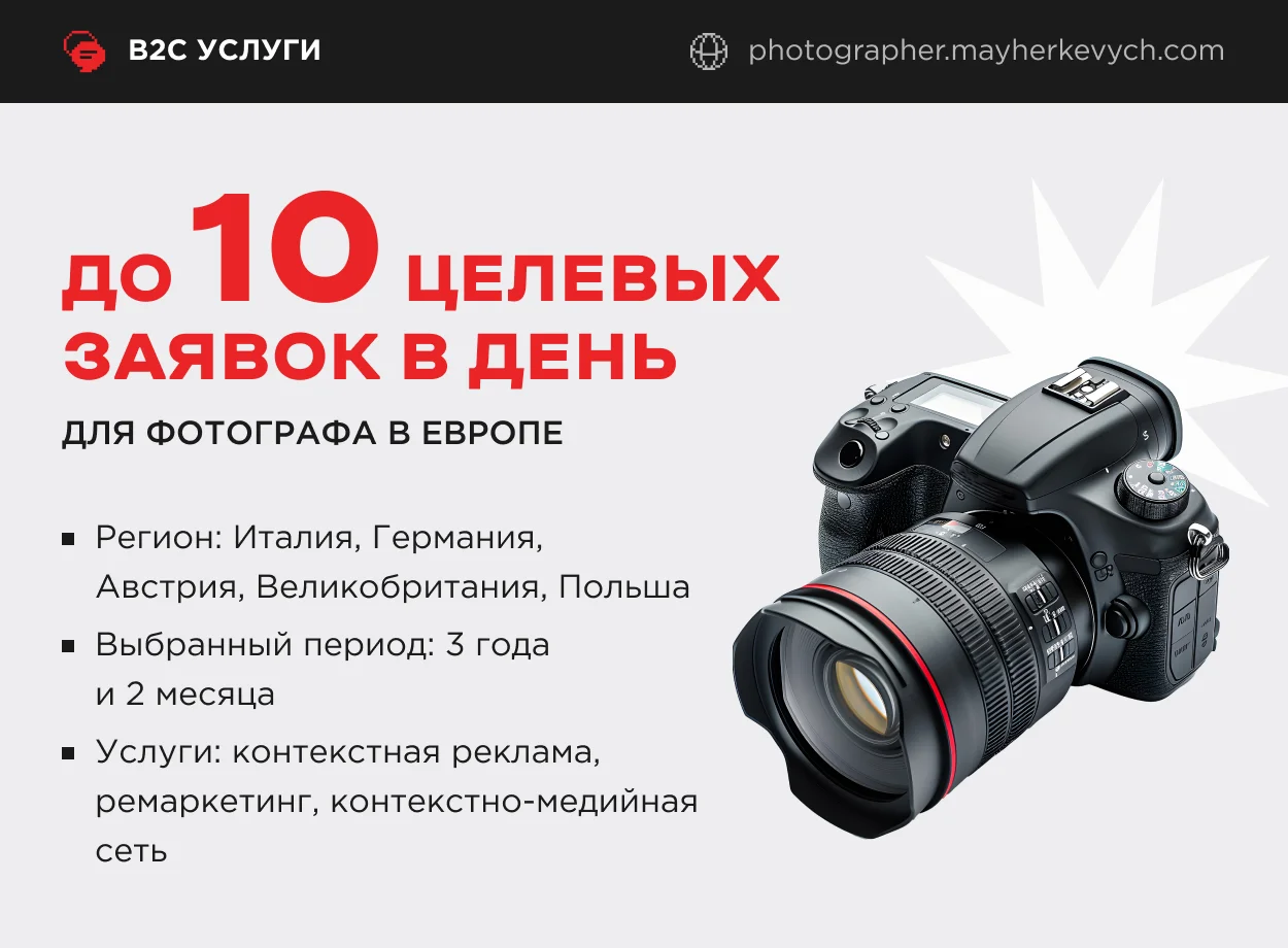 Вот несколько ярких примеров решения этих задач при помощи комплексного маркетинга: создания сайта, контекстной рекламы, SEO-продвижения, а также рекламы в Facebook, Instagram.